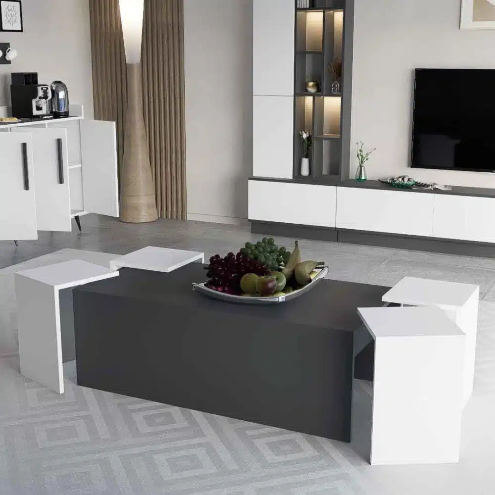 مميزات طقم طاولات شاشة لون ابيض مع رمادي: