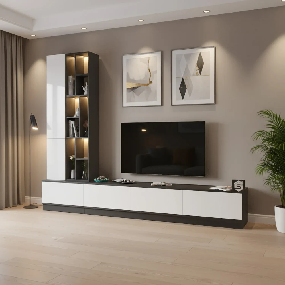 ملاجظة : طاولة التلفزيون تشمل الاضاءة بدون اسلاك (تحتاج فني لتوصيل الاضاءة)